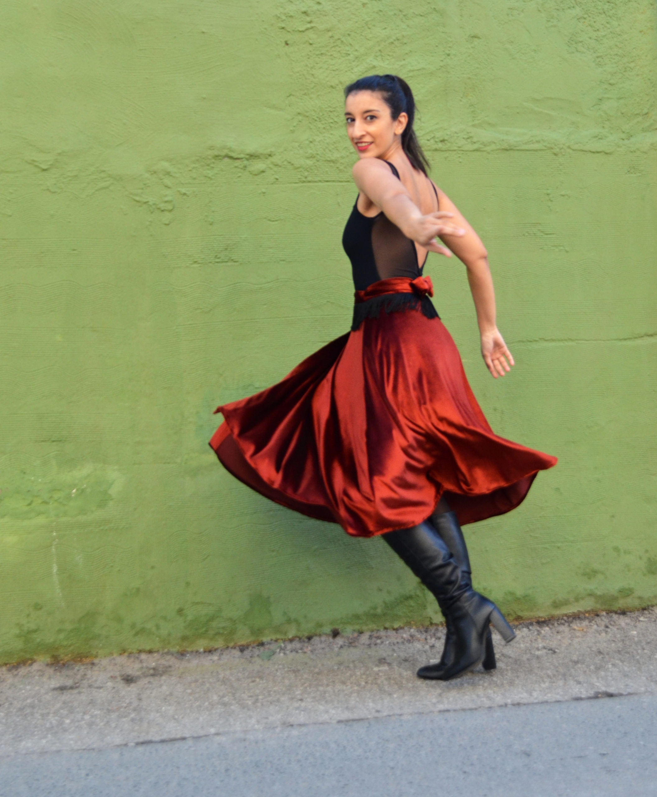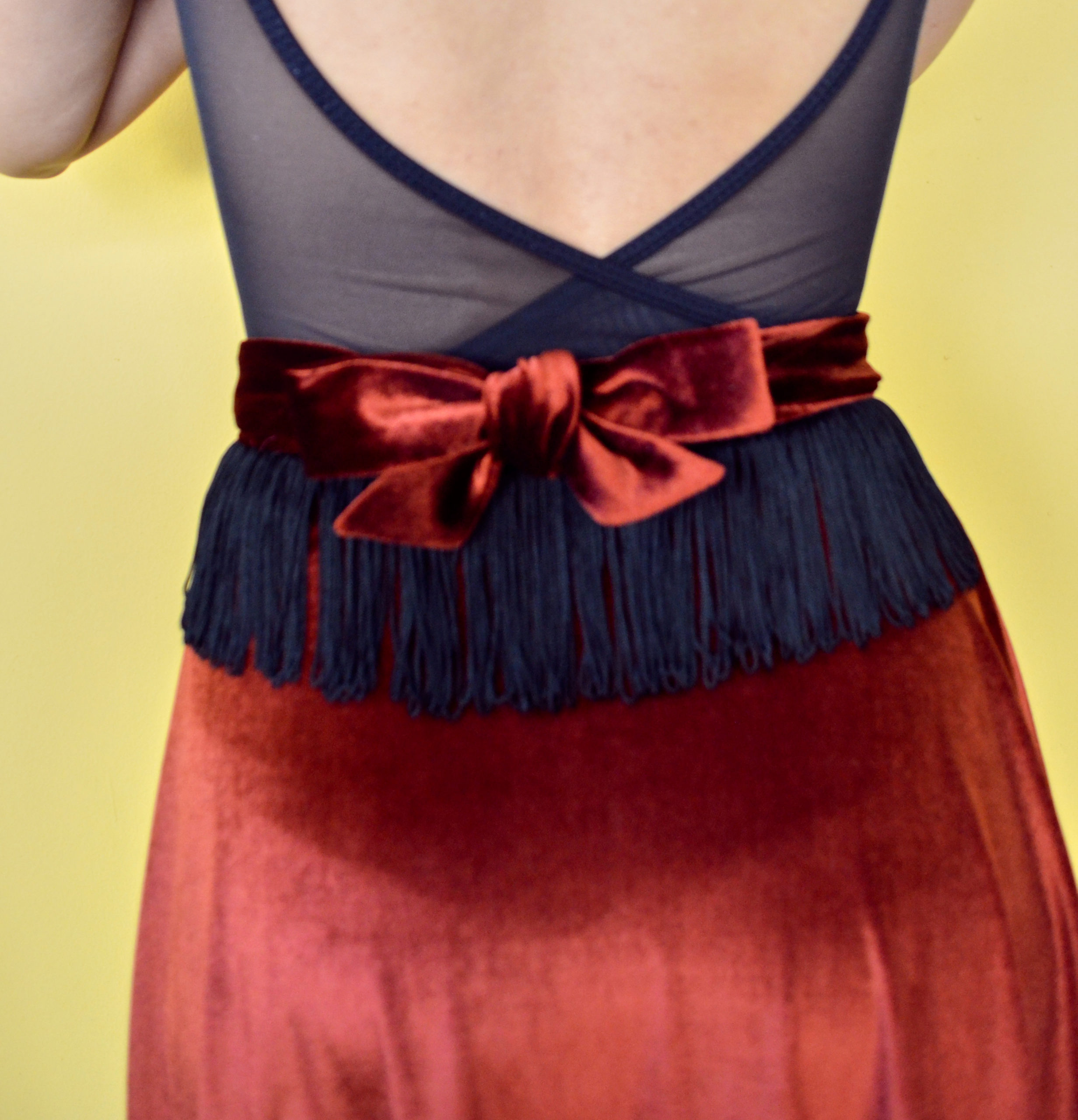 Midi φούστα “Duende” βελούδινη, κεραμιδί με κρόσσια στη ζώνη. Δένει στο πλάι.