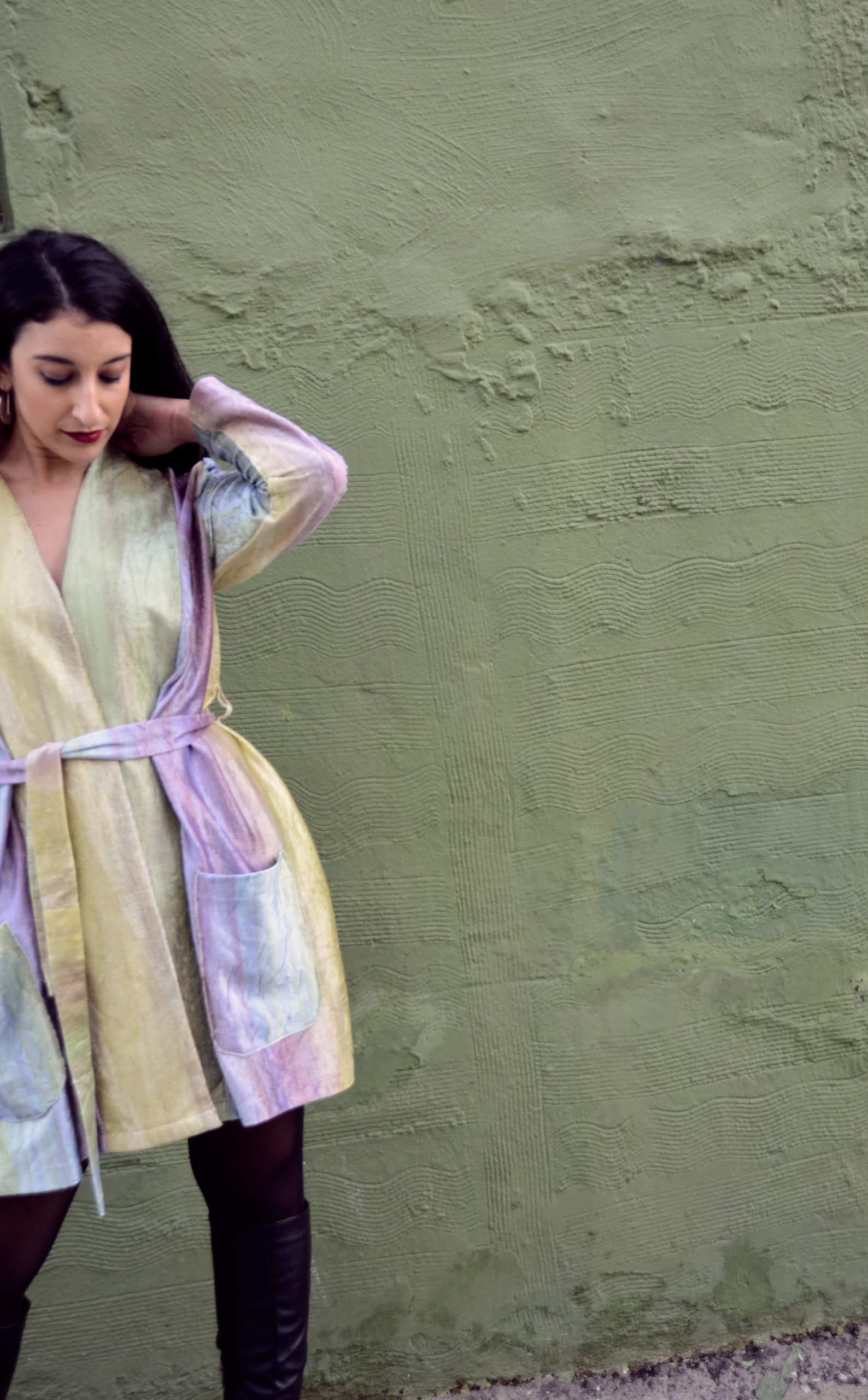 Πολύχρωμο “Ikigai” κιμονό/φόρεμα με ζώνη στη μέση και τσέπες.