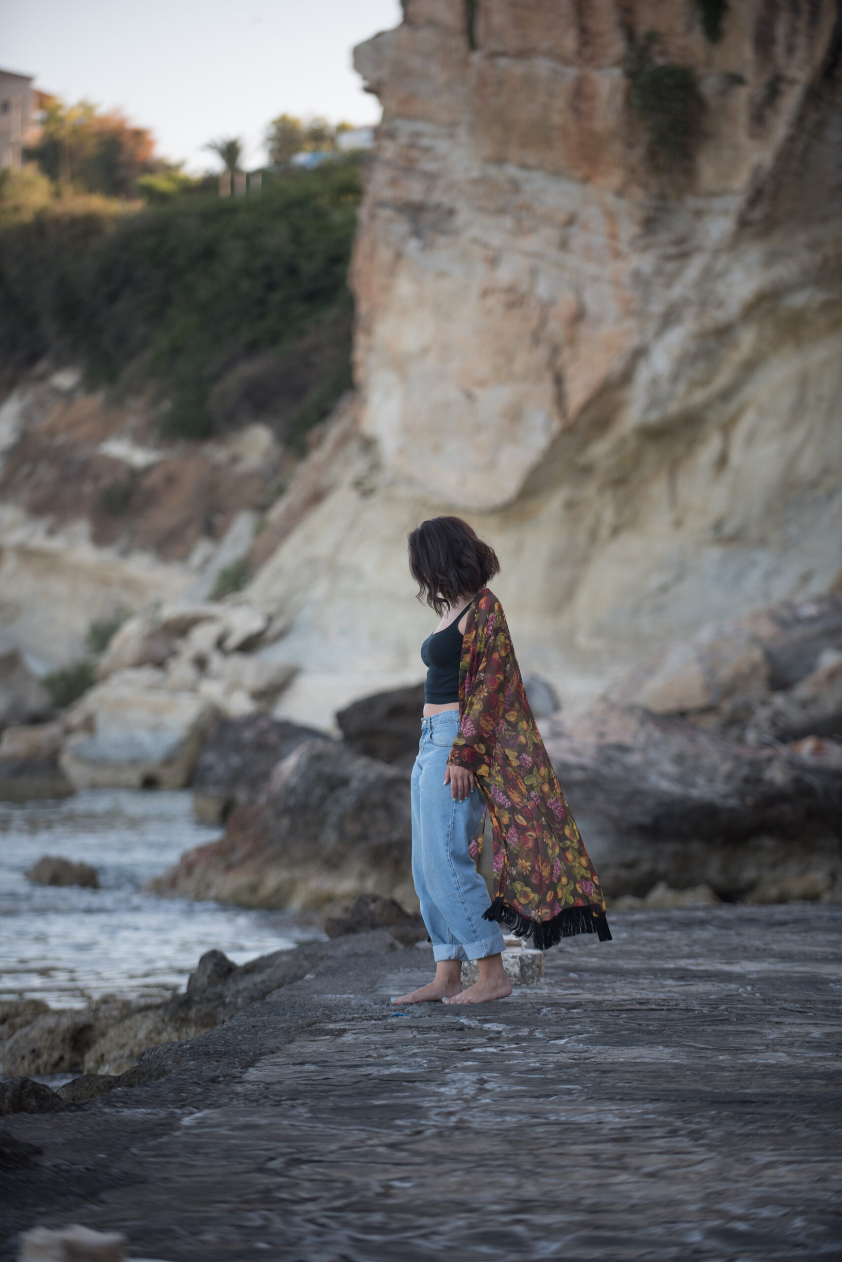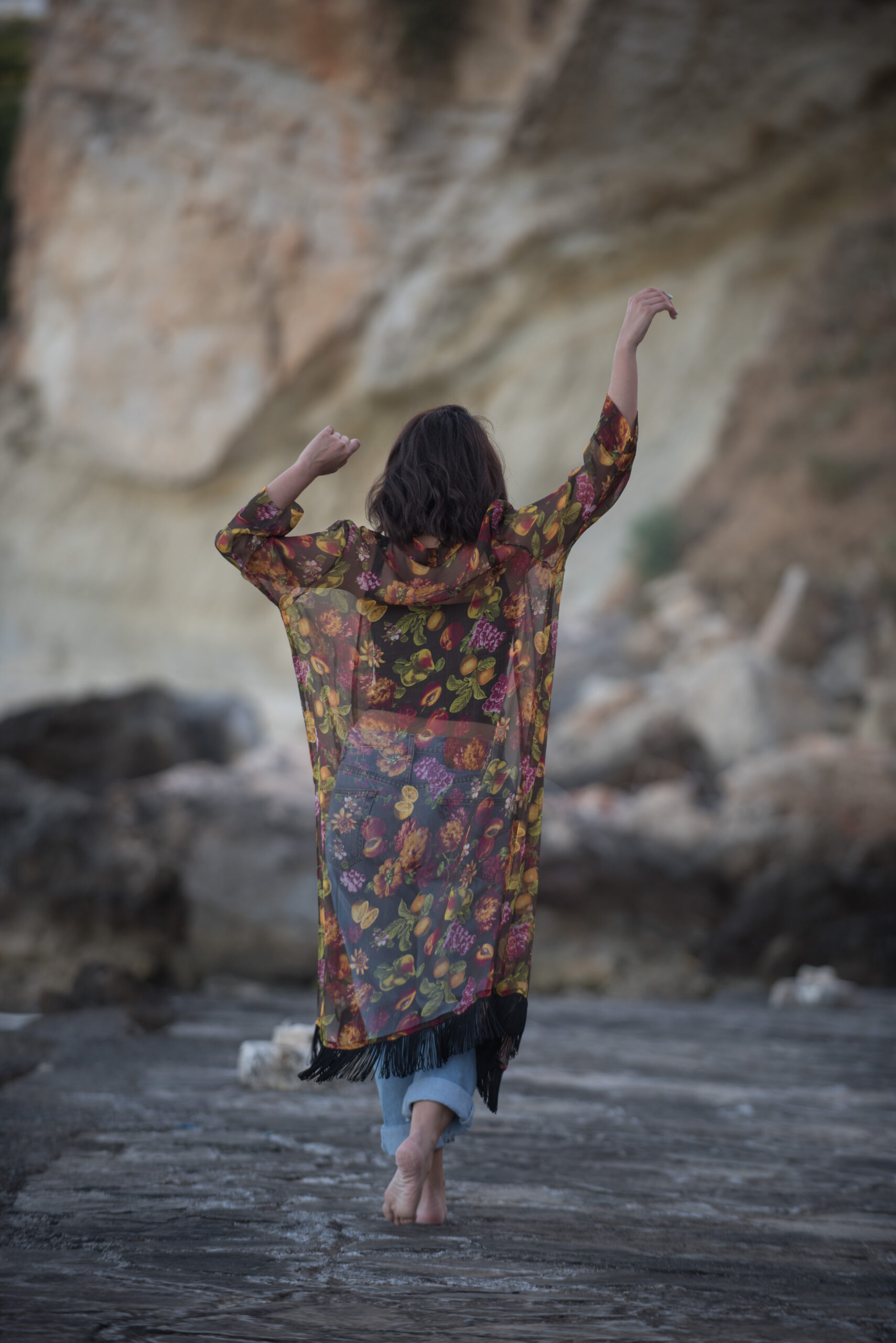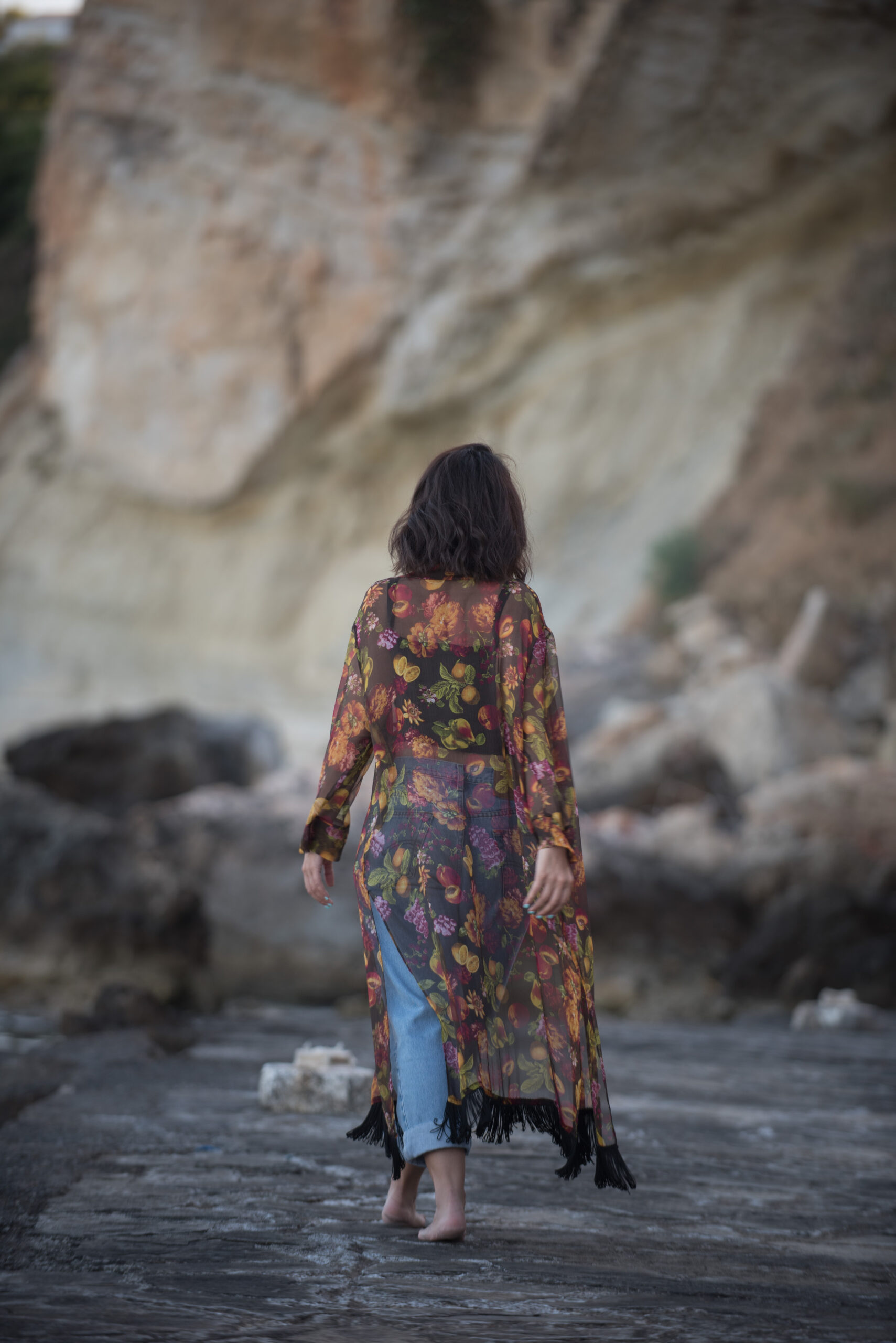 Κιμονό με διαφάνεια και μαύρα κρόσσια