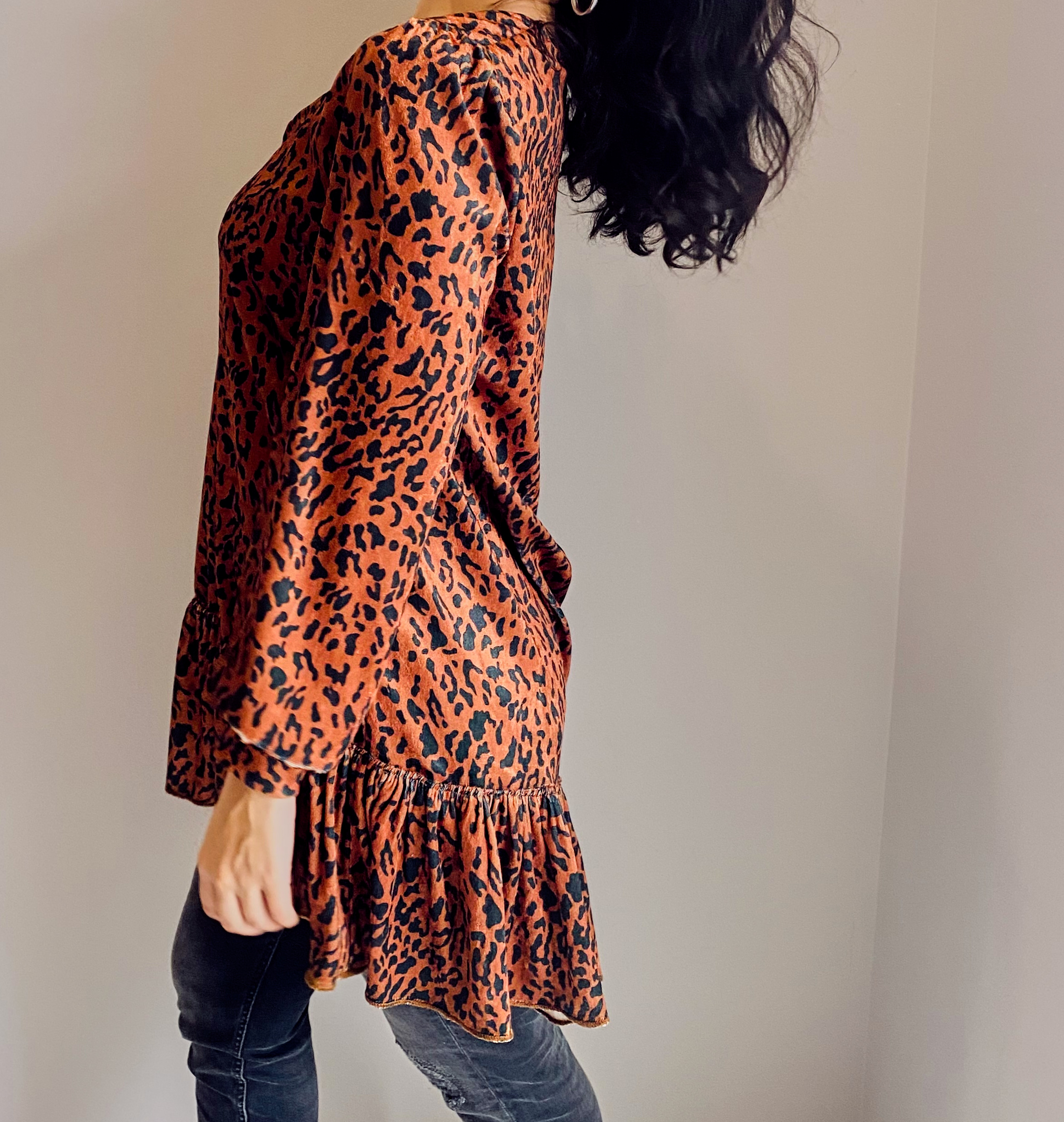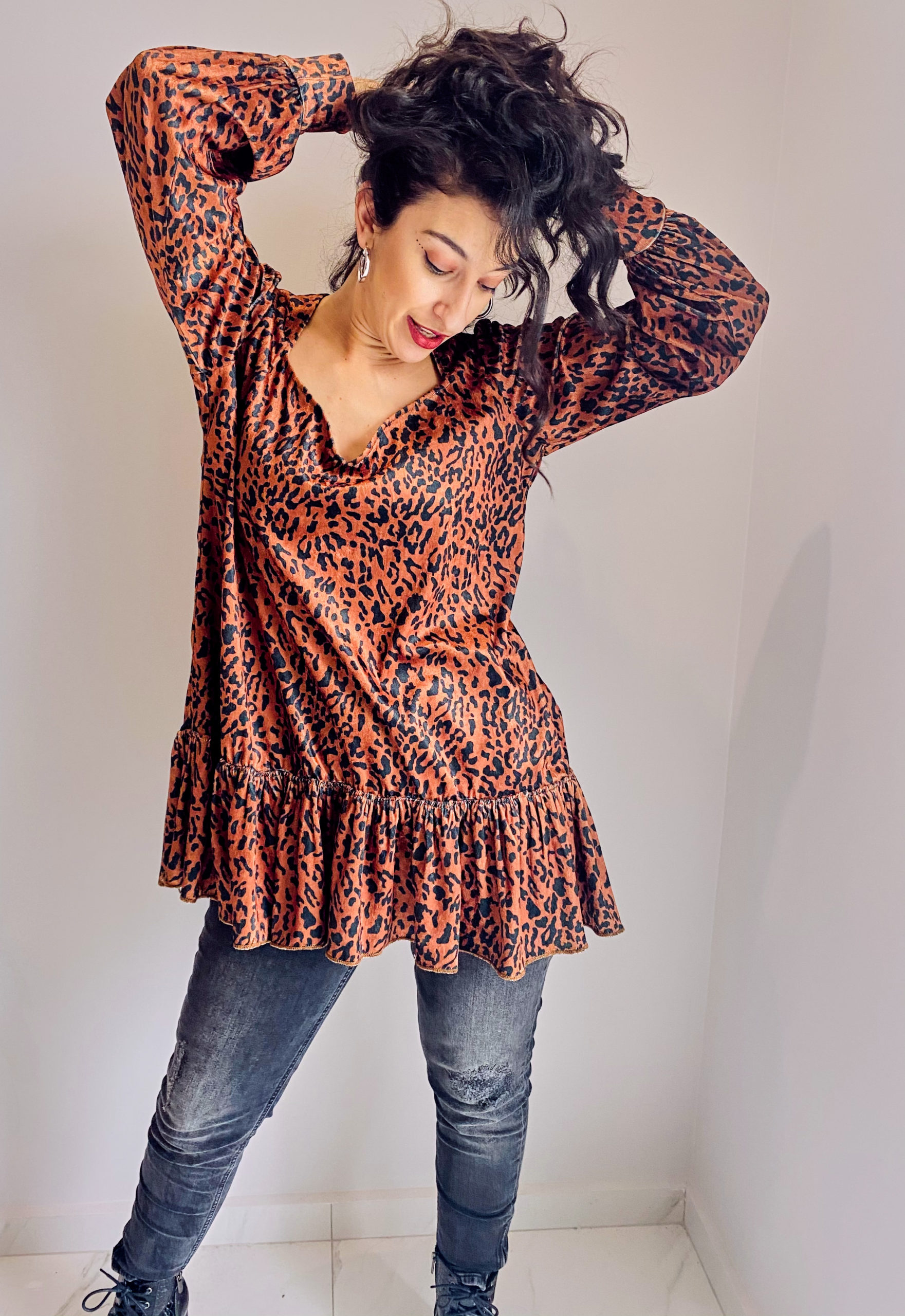 Βελούδινο μπλουζοφόρεμα κανελί λεοπάρ.