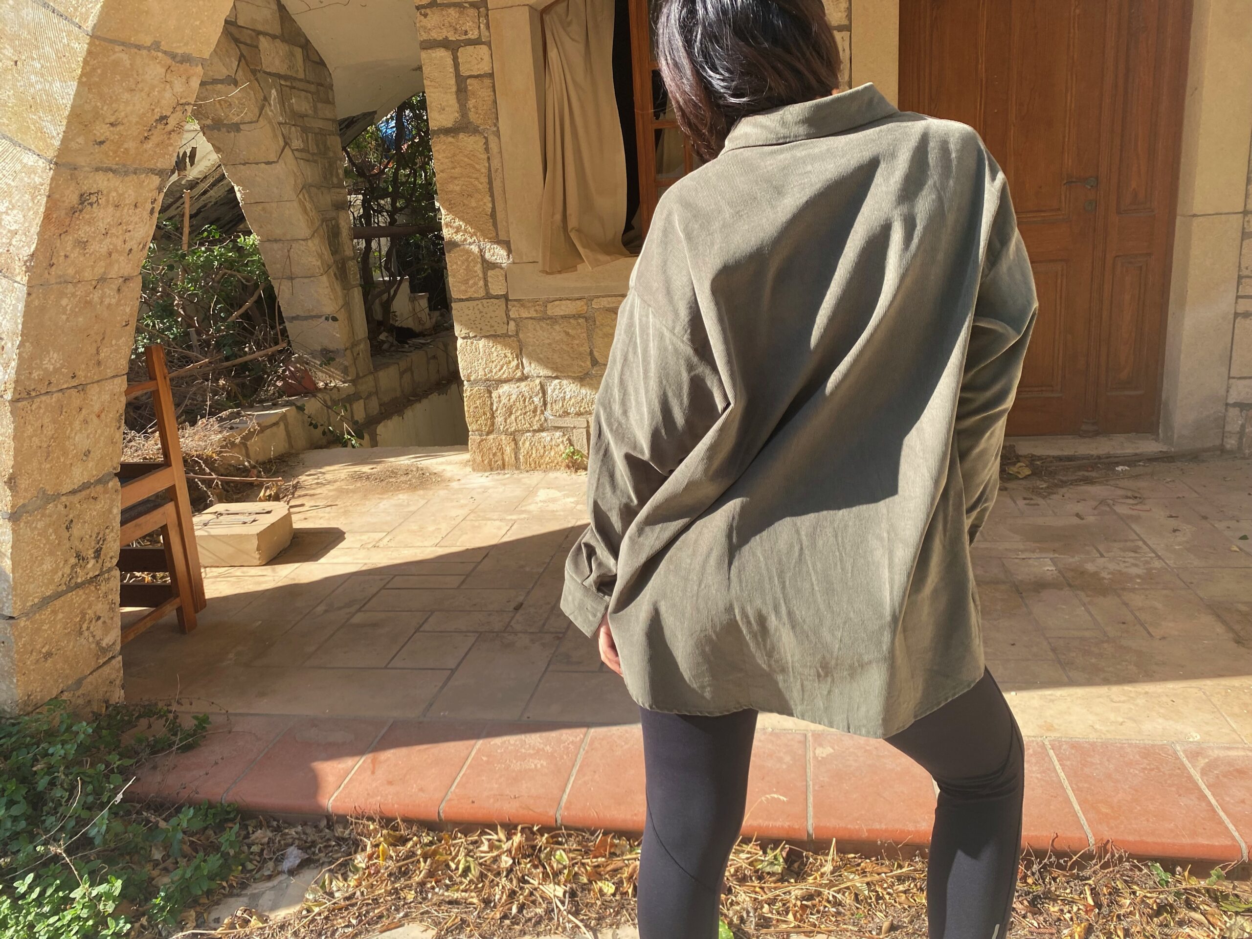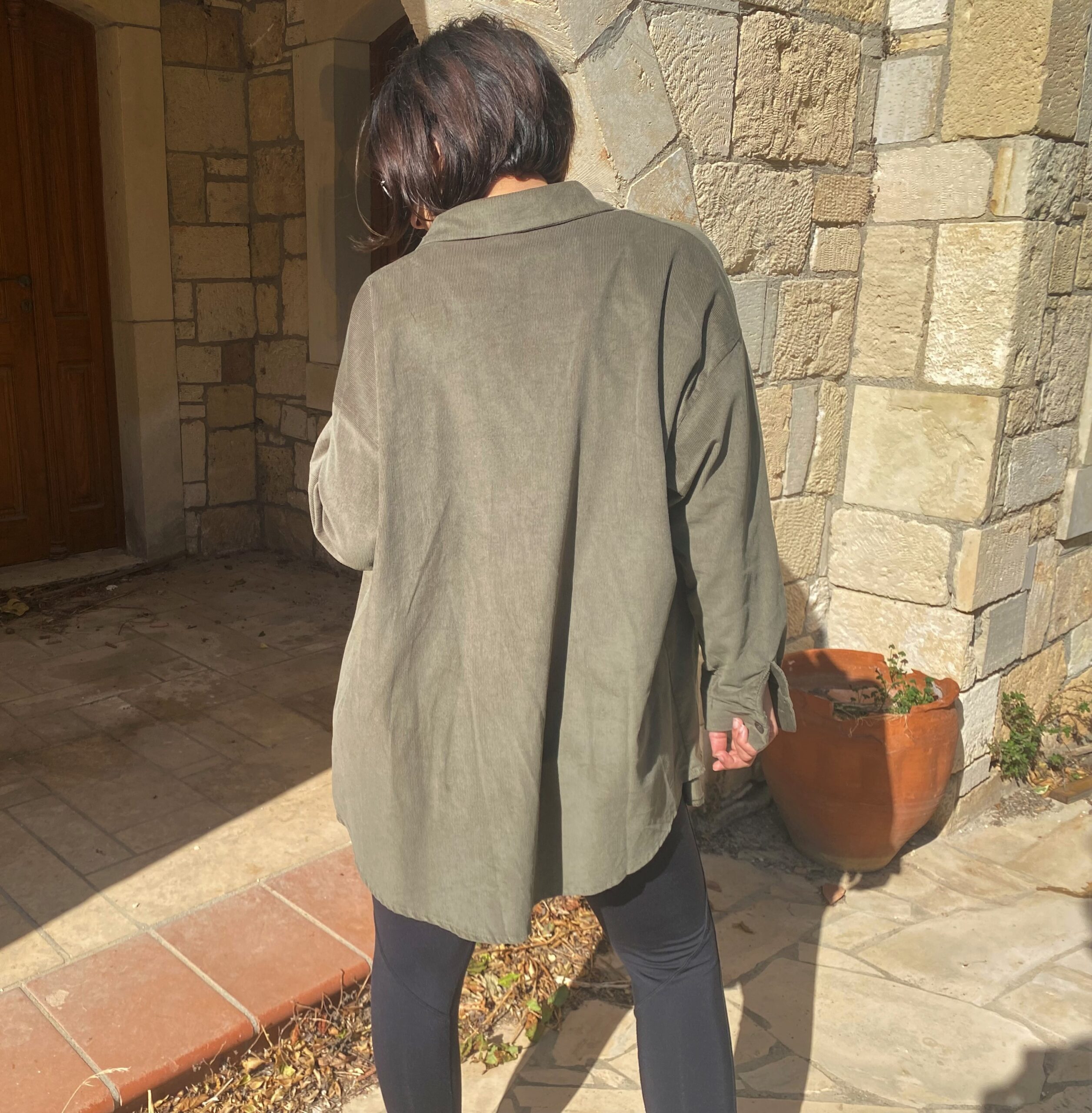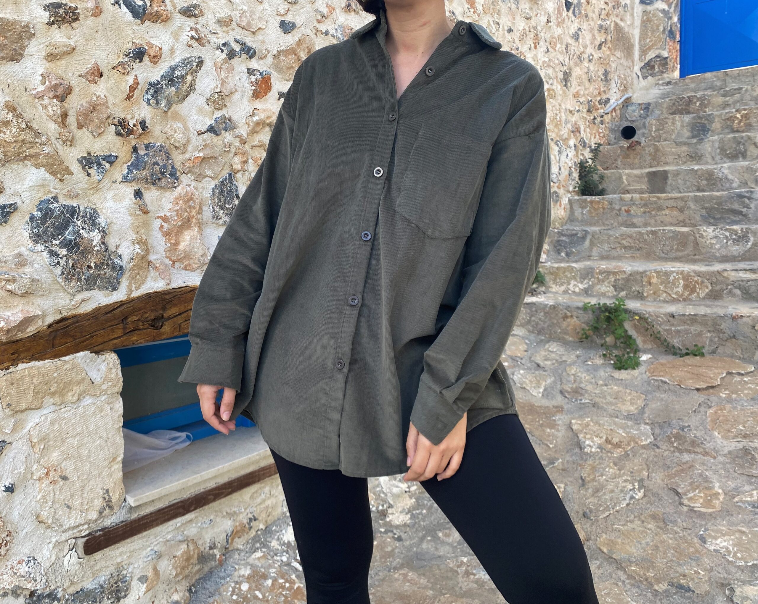 Oversize κοτλέ boyfriend πουκάμισο σε χρώμα χακί